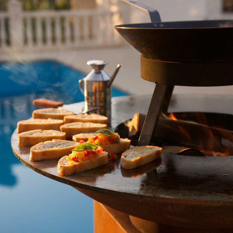 Tiger Fire malkas kamīna pamatā ir vienkāršs princips - piramīdas forma grila centrā iekurt uguni - kas ļauj ātri izbaudīt gardus ēdienus un koka liesmas svētlaimīgo siltumu. Ierīces lielā gatavošanas virsma rada dažādas temperatūras zonas: tuvu ugunij, tā ir kvēlojoši karsta, un ārējā mala ļauj jūsu traukam sautēties maigi. Pēc cepšanas nolieciet uz uguns vēl dažas pagales un izbaudiet savu TiGER FIRE kā atmosfēras terases kamīnu mājīgiem un siltiem vakariem. Šādi jūs varat baudīt ēdiena gatavošanu brīvā dabā visu gadu.